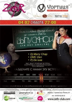 В суете взрослой послешкольной жизни практически никому из нас не удается найти время, чтобы встретиться со своими одноклассниками, - именно с теми людьми, с которыми мы были так близки все эти годы... Но в первые февральские выходные мы в состоянии все изменить! Добро пожаловать на самую лучшую вечеринку в городе, на которой можно будет встретить и свою первую любовь, и соседа по парте, и знакомых из параллельного класса. От вас требуется только хорошее настроение и желание уйти в отрыв с друзьями.