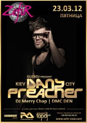 Диджей и саунд продюсер Dany Preacher начал свою музыкальную карьеру в 2004 году. Творчество Dany Preacher’a как музыканта основано на создании качественного продукта, который отвечает всем современным тенденциям электронной музыки. Участник фестивалей: I Love Techno.UA, Techno Gadget, KaZantip. Победитель “Лифт в небо” KaZantip от радиостанции Kiss FM Ukraine. Резидент вечеринок: Time 2 Nu Rave, TECHNOлогия Безумия, HEADBANGERS! Участник проекта: "HEADBANGERS!". Вечеринок которые уже закреплены за многими лучшими клубами Украины Forsage, Saxon, Небо Party Bar и радио шоу на волнах KISS FM. Слушайте Радио Шоу "HEADBANGERS" на волнах KISS FM каждое воскресенье с 4:00- 5:00. Достигший больших высот в продюсирование, треки Dany Preacher's издаются на многих мировых лейблах: Freak Like Us (DE), Starblocks Music (USA), Metronix Recordings (USA), Noise Planet Records by John Digweed (BA), Boink! Music (USA), BomBeatz Ink. (USA), Supercool Rec. (USA), Electrico Records (USA), Samoa Good (USA) и получили поддержку от многих ведущих диджеев мира. Его треки и ремиксы неоднократно попадал в чарты многих диджеев и продюсеров и не раз входили в топ в самом популярном интернет магазине по продаже музыки "beatport.com". Его треки попадали в такие сборники как: "WMC Miami 2010" от JamVana и благотворительную компиляцию "100% Haiti" от Bombeatz Ink.