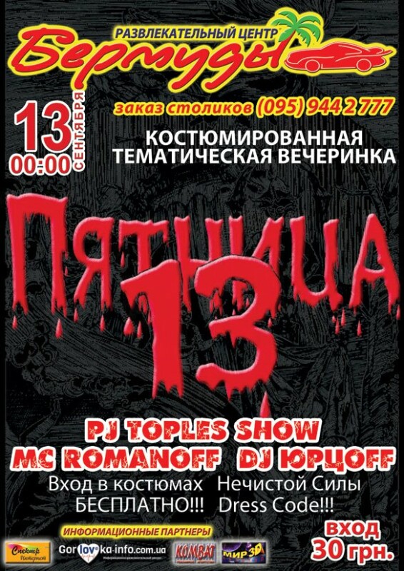 Костюмированная тематическая вечеринка «ПЯТНИЦА 13»