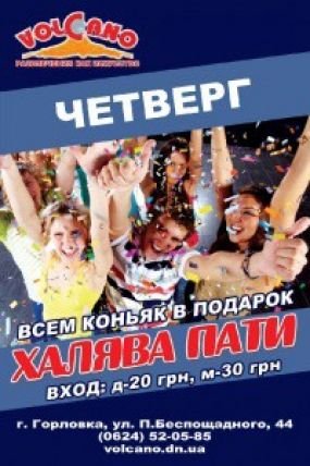 Каждый четверг «Халява ПАТИ». Всем коньяк в подарок.