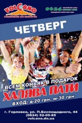 Каждый четверг «Халява ПАТИ». Всем коньяк в подарок.
