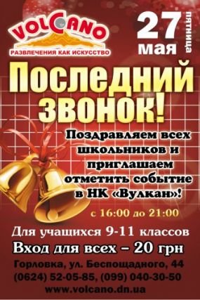 Поздравляем всех школьников и приглашаем отметить событие в НК "Вулкан"