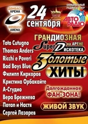 24 сентября 2011 года «Донбасс Арена» проведет грандиозный концерт под названием «Золотые Хиты», организатором которого выступает концертно-театральное агентство «Карина».
