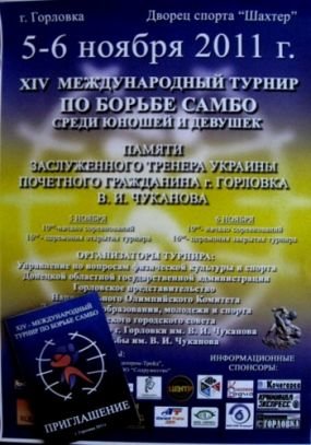 С 4 по 6 ноября в Горловке, во Дворце спорта «Шахтер» состоится XIV Международный турнир по борьбе самбо памяти Заслуженного тренера Украины, Почетного гражданина города Горловки В.И. Чуканова.