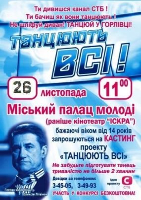 Танцуют все в Горловке! - это наша адаптация известного украинского Национального талант-шоу "Танцуют все!" на телеканале СТБ и британского шоу So You Thіnk You Can Dance? (в переводе: Думаешь, ты умеешь танцевать?)