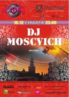 10 декабря!Суббота! Cocktail Hall "ZEFIR" снова не оставляет вас без подарков в виде приглашённых гостей!Единственное условие-присутствие на этом празднике вас и ваших друзей,а также вашего позитивного настроения! На этот раз ваше настроение в руках DJ MOSCVICH (МОСКВА)!!!!!Во время своей игры он дарит массу счастья и позитива, а самое главное радость людям которые окружают его в это время!!!