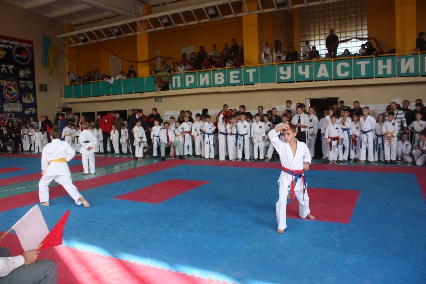 Сегодня в 9:00 утра в ДЮСШ №1 начались всеукраинские соревнования по каратэ. Чемпионат Украины – плановое мероприятие, которое проводится ежегодно, как и Кубок Украины, областные соревнования. В этом спортивном мероприятии принимают участие около 400 спортсменов из многих областей Украины. Особенность этого соревнования в том, что к чемпионату организаторы (федерация каратэ-до Украины) совместили с первенством, для того чтобы спортсмены младших возрастов соревновались вместе со старшими, учились и перенимали у них опыт. «Дети с раннего возраста погружаются в атмосферу соревнований – это для них весомый стимул развиваться, более ответственно относиться к тренировочному процессу – говорит президент федерации каратэ-до Украины Владимир Марков». Соревнования проводятся по олимпийской системе, то есть единожды выбывший участник больше не выступает. Спарринги проводятся бесконтактные и рассчитаны на показание хорошей техники, а не на выведение противника из строя. «Ведение такого боя на порядок сложнее и требует серьёзной подготовки. Удар должен фиксироваться на расстоянии 2-х сантиметров от головы или корпуса. Это позволяет проводить соревнования и избежать травматизма – подчеркивает Владимир Марков».